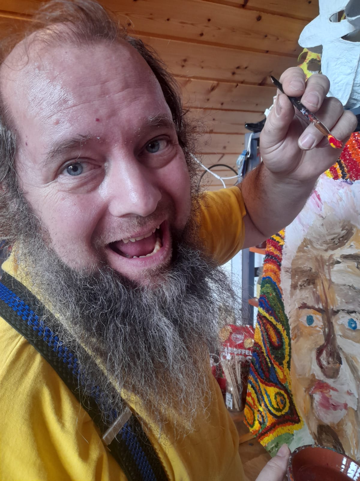 Bei der Arbeit, wir sind keine Zeichner für realistische Porträts und trotzdem lieben wir bestimmte Details. Manchmal sind es surreale Details, manchmal einfach etwas Abstraktes dazwischen, das hervorheben spezieller Charakterzüge. Ein Photo wie ein Photo zu zeichnen wäre langweilig. Trotzdem haben wir oft ein Photo als Vorlage, ein Luxus der heutigen Zeit, so das ein Model nicht mehr herumstehen braucht – auch wenn ein reales Model tausendmal mehr offenbart. Wir lieben es etwas zu erzählen und ein echter Charakter bringt schon sehr viel an Geschichte mit. Früher dachte ich, nachdem ich zwanzig und mehr Porträts hinter mir hatte, ich könnte alles und Jeden in ein Porträt fassen – was für ein fataler Irrtum. Eine Geschichte kannst du erst dann wirklich gut erzählen, wenn du diese auch verstanden hast, denn sonst erzählst du schnell etwas anderes. |